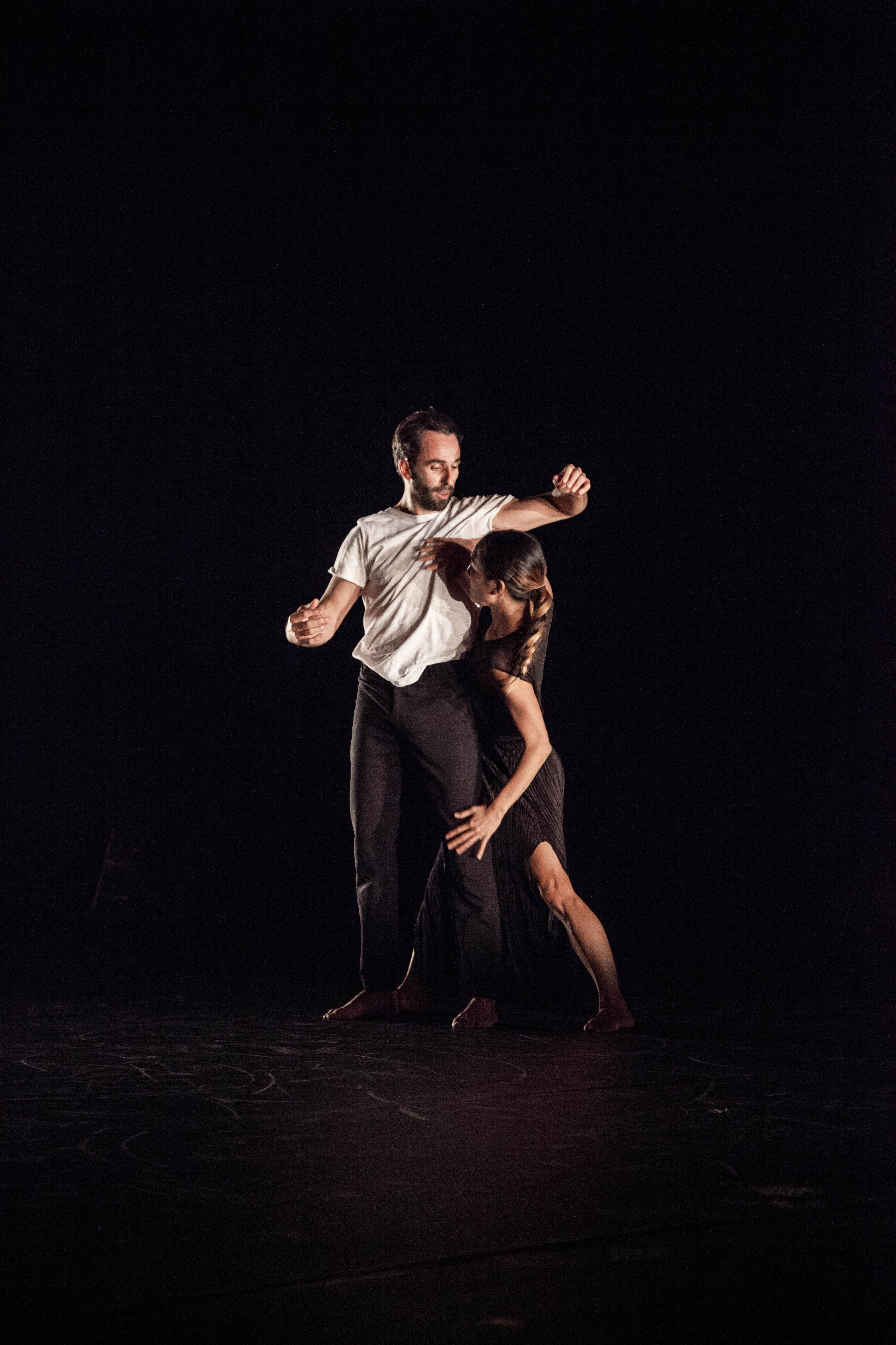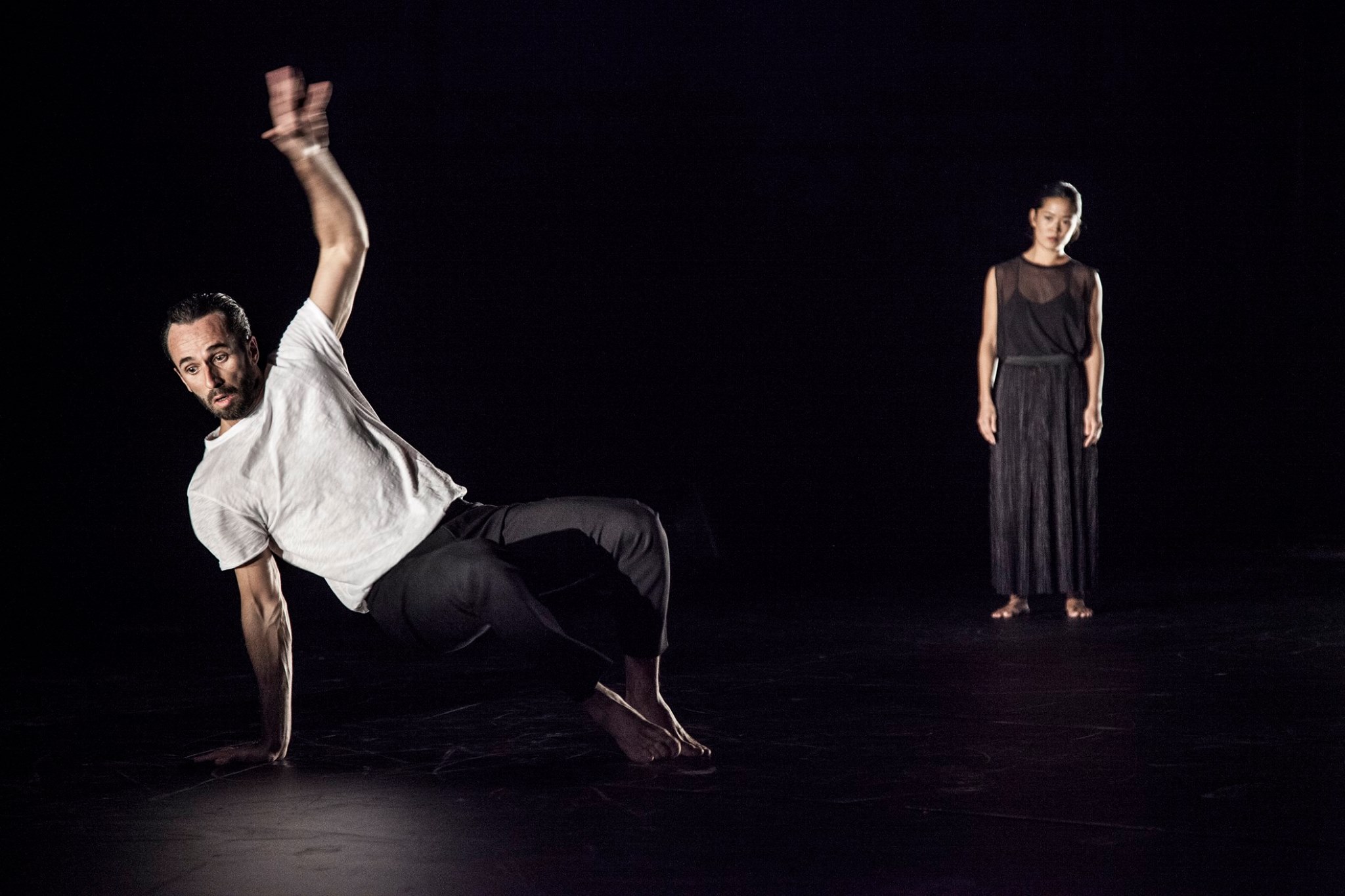 AP15 is 15 minutes of pure dance. No need for scenography here. A man and a woman mirror each other in a nervous and feverish pas de deux. As with a couple dancing the tango, the duo explores a symbiotic relationship, in the face of difference, where each dancer manipulates the desired “other”. Between the soul and flesh, between Cupid (Amor) and Psyche, they proceed like in a game of chess. This piece fights like a martial arts duo in a universe of sound signed by Alva Noto and Ryuichi Sakamoto.
